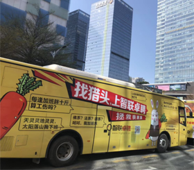 車輛定點定線投放,消費者可以上車體驗,拉近產品和消費者的距離,為公司另類渠道營銷造勢,同時拉動百度搜索指數,超高性價比,一臺定制大巴車效果>十臺公交車,與之對應的是良好的傳播效果,價廉物美; 發布周期更靈活,不同于其他戶外媒體需最短一個月或者幾個月起做的發布期,定制大巴按天計算。
